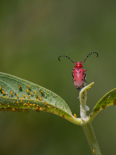Milkweed Borer and aphids on Showy Milkweed