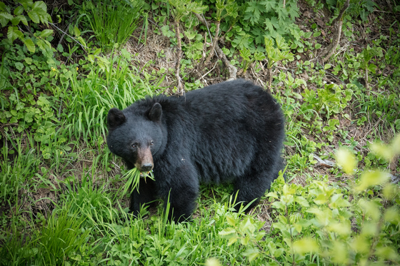 Black Bear Eating Grass