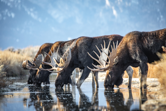 When i saw these cowboys making their way towards the local bar I quickly ran over to it in hopes of getting a shot at one of them crossing. to my surprise four of them lined up in order for a drink!