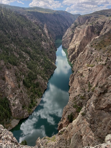 An overlook on Highway 92 looking out at the Curecanti Needle and Morrow Point Reservoir.