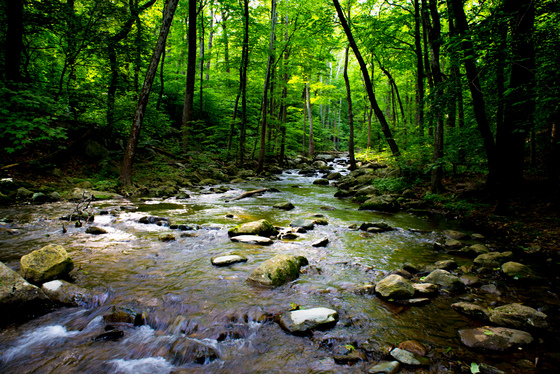 Out of the Forest: White Oak Creek emerges from White Oak Canyon and flows through a beautiful hardwood forest.