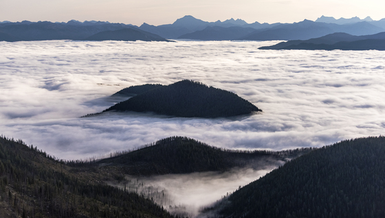 Islands in the Clouds. The tops of Fire Mountain (6834'), at center, float like islands above the clouds that blanket most of our sight area early one morning before work. El Capitan (9925'), on the horizon, dominates this part of the Bitterroot Range. This image was taken from Spot Mountain Lookout with a Nikon D810 and Nikkor 70-200mm f/2.8. 9/10/19.