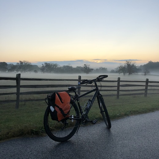 For the past 12 years I have been bike commuting to work. I love leaving my car at home while I get fresh air, exercise and enjoy the park I work in. This past October I was riding into work just as the sun was rising in the east. I was riding past the Culp Pasture when the ground fog combined with the sunrise to produce a magical moment. The serenity of the dawn stood in stark contrast to the intense fighting that took place on Culp's Hill on July 2, 1863. I felt lucky to live and work here.