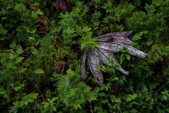 Ground ferns and yagrumo leaf